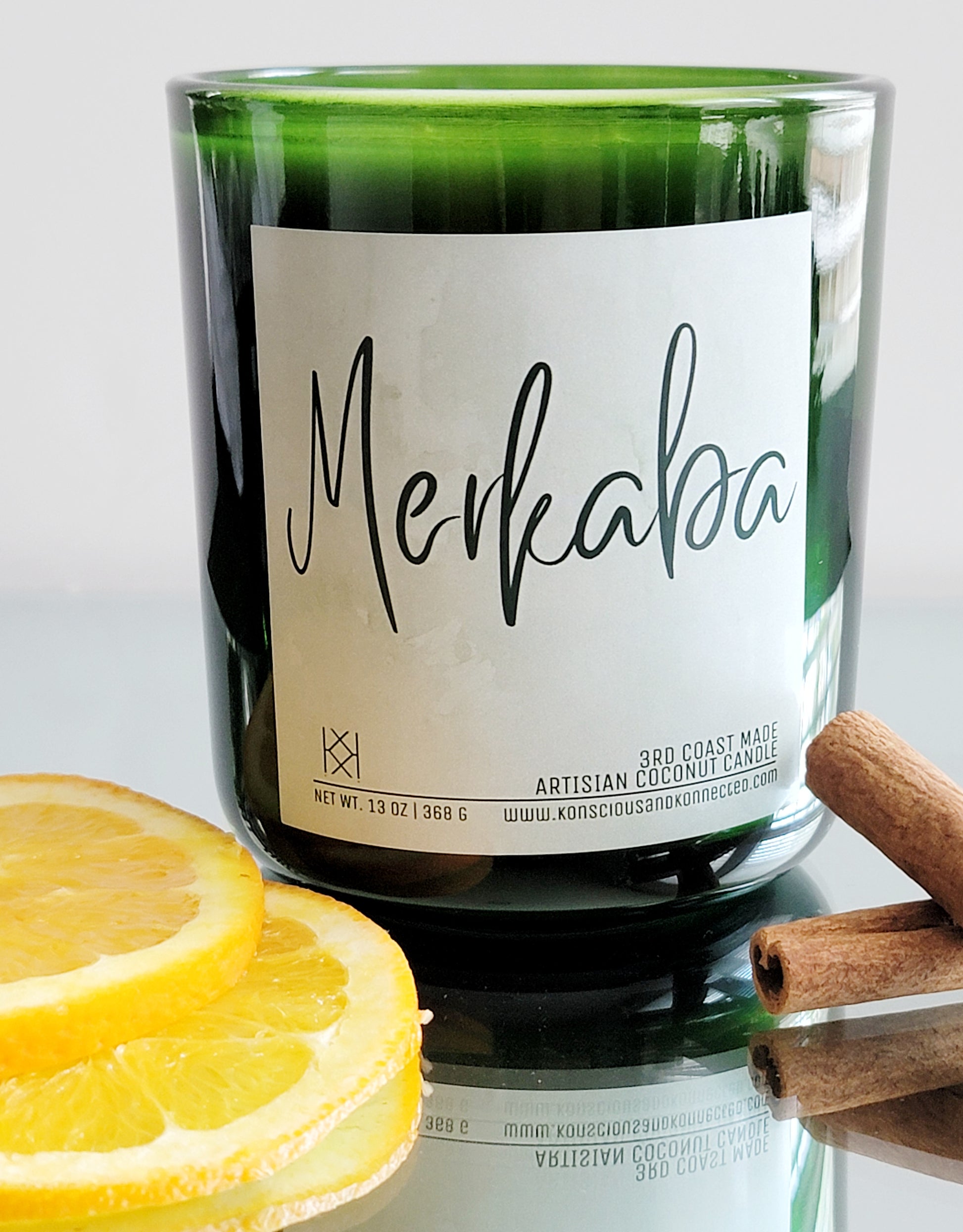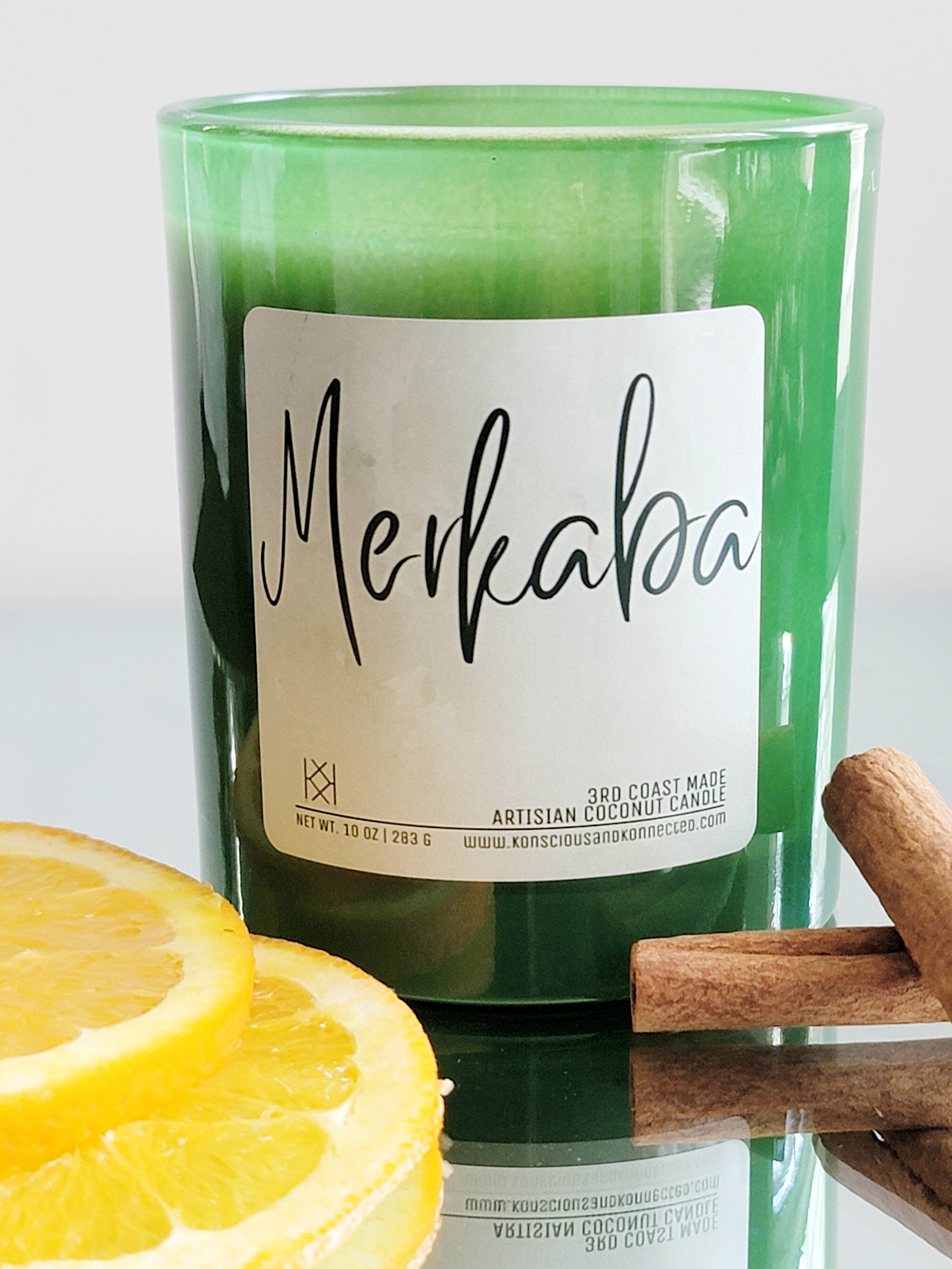 Coming from a Hebrew word meaning chariot, or as light, spirit, body. This scent is sure to activate the vehicle of light around your own body with practiced meditation and breathing techniques. The Merkaba is said to provide protection and transport your consciousness to higher dimensions. Let the Merkaba candle reminds us of the potential power we can wield when we unite our energies in pursuit of connection and growth.